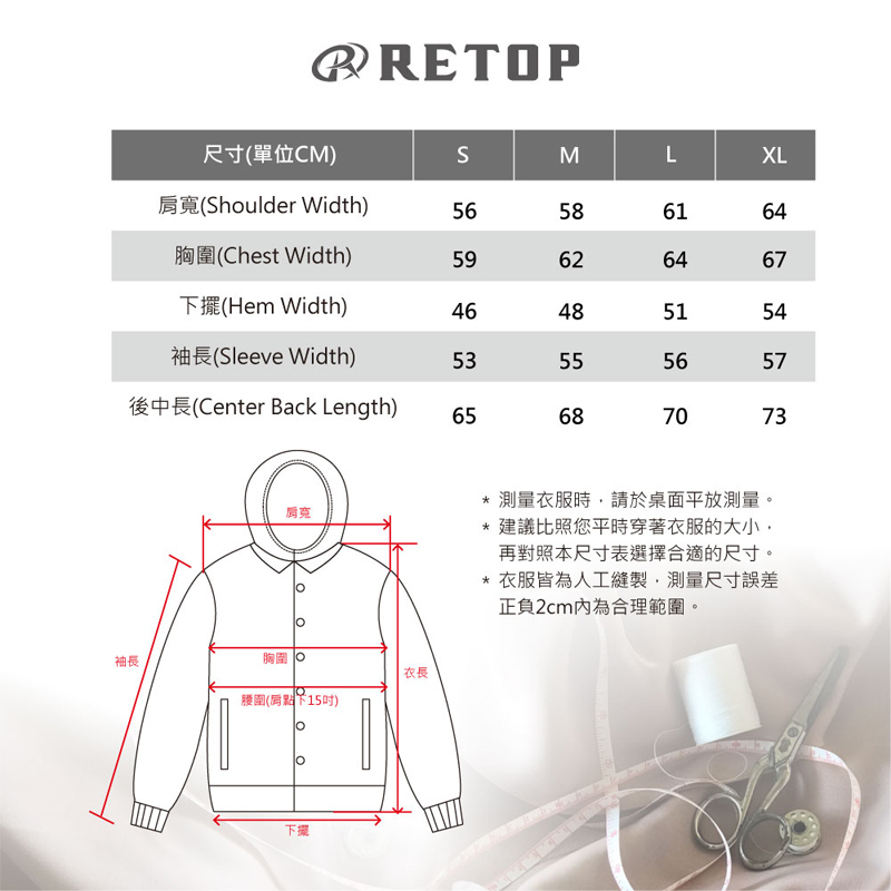 ★ 尺寸明細為平放側量,衣服測量尺寸誤差正負2公分內為正常。