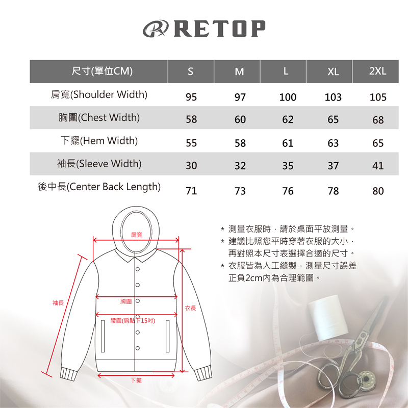 ★ 尺寸明細為平放側量,衣服測量尺寸誤差正負2公分內為正常。