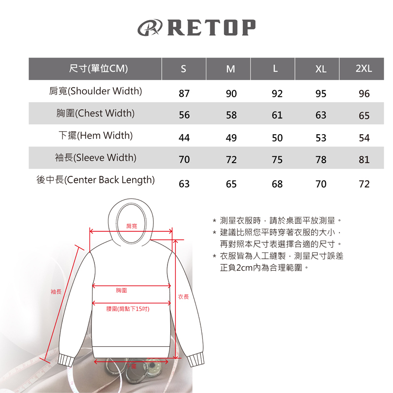 ★ 尺寸明細為平放側量,衣服測量尺寸誤差正負2公分內為正常。