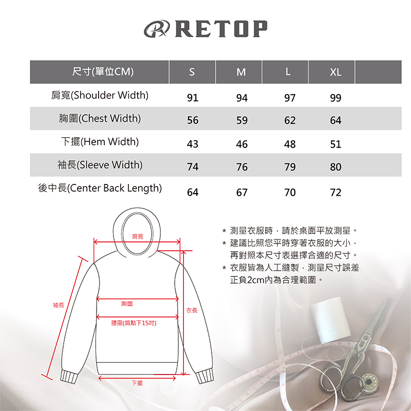 ★ 尺寸明細為平放側量,衣服測量尺寸誤差正負2公分內為正常。