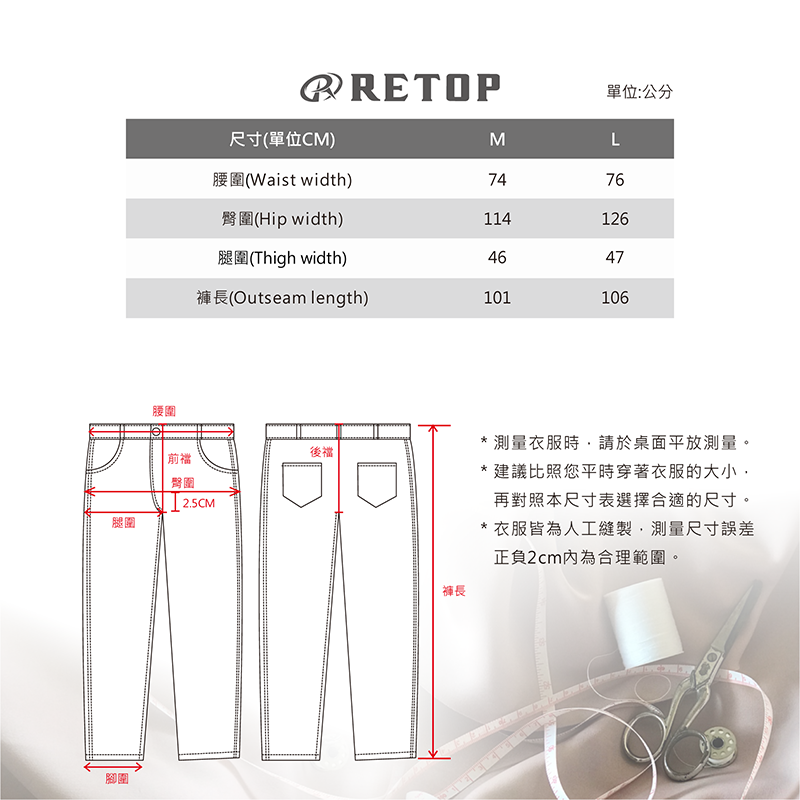 ★ 尺寸明細為平放側量,衣服測量尺寸誤差正負2公分內為正常。