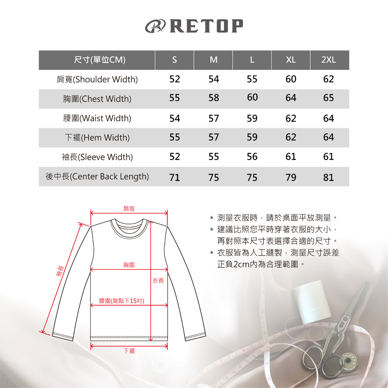 ★ 尺寸明細為平放側量,衣服測量尺寸誤差正負2公分內為正常。