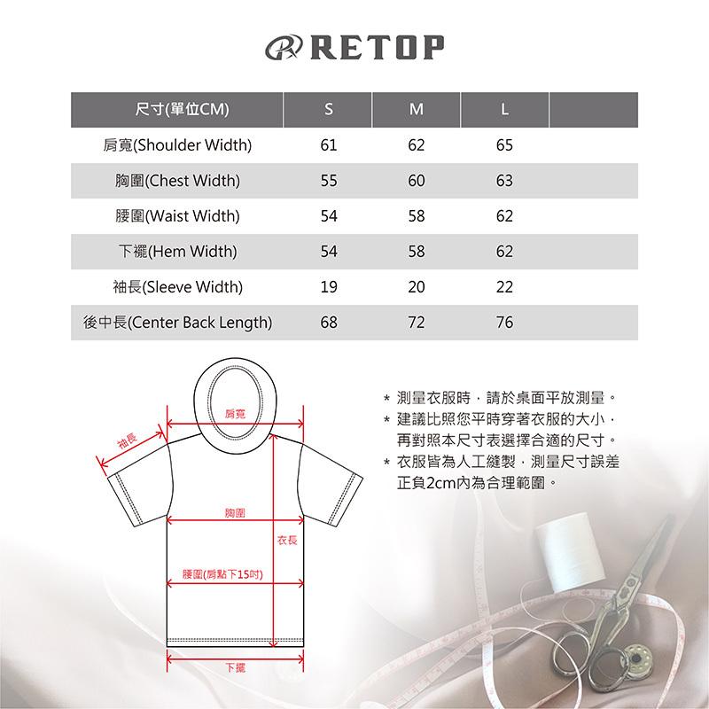 ★ 尺寸明細為平放側量,衣服測量尺寸誤差正負2公分內為正常。